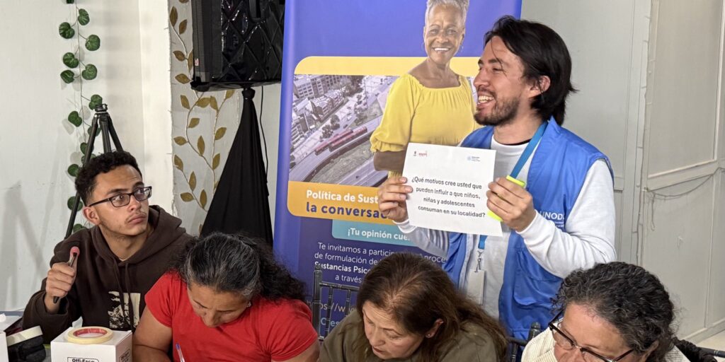 Desde mayo de 2025, UNODC acompaña a la, Secretaría Distrital de Salud de Bogotá, en este proceso, guiándose por la metodología CONPES de la, Secretaría Distrital de Planeación. Se ha realizado una lectura del contexto internacional, nacional y local, considerando que el fenómeno de las drogas es transnacional y hay buenas prácticas internacionales que pueden adaptarse al contexto bogotano. También se ha revisado literatura y aportes de entidades distritales y organizaciones de la sociedad civil.