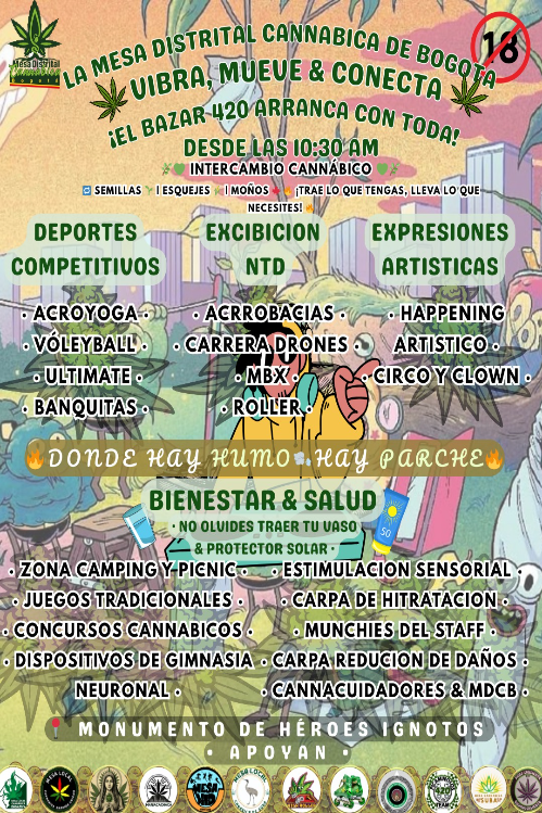 Organizado por la Mesa Cannábica Distrital de Bogotá, el Bazar 420 nace de la colaboración entre activistas, emprendedores y artistas para construir un espacio autogestionado, autoglorificado como “acto de resistencia y cultura”. Con el apoyo de aliados locales y nacionales, este festival busca: