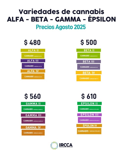 Según la información proporcionada por el IRCCA, esta revisión estableció un incremento de 10 Unidades Indexadas (UI) para el paquete estándar de cinco gramos en todas las variedades disponibles. Los nuevos precios son los siguientes: 480 UI para Alfa II; 500 UI para Beta II; 560 UI para Gamma II; y 610 UI para Epsilon II.