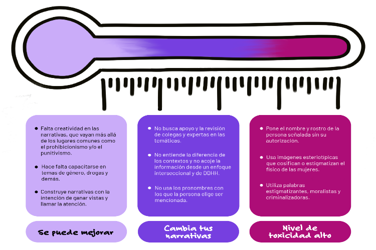 ✅ Errores en la cobertura periodística y comunicativa: analiza cómo los medios reproducen discursos punitivos y patriarcales al hablar sobre mujeres y drogas, perpetuando prejuicios y reforzando paradigmas represivos.