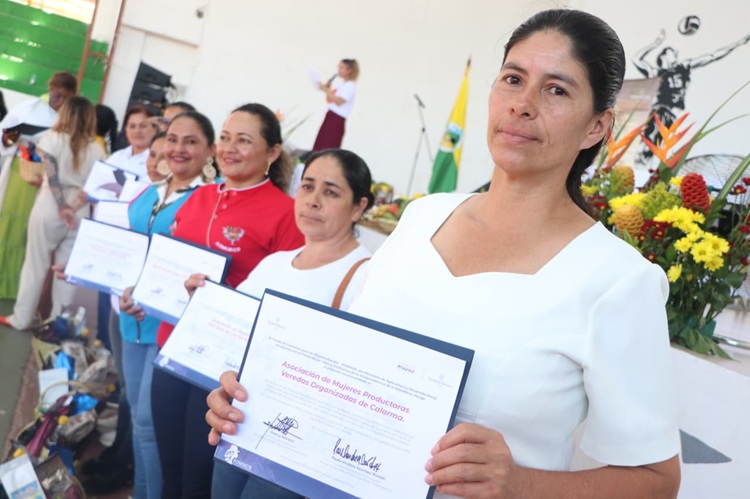 Durante la jornada, se entregaron reconocimientos a 10 organizaciones de mujeres rurales beneficiarias del Fondo de Fomento para las Mujeres Rurales (FOMMUR), línea 1, por su labor en la construcción de paz, el cuidado del medio ambiente, la seguridad alimentaria y el desarrollo comunitario.