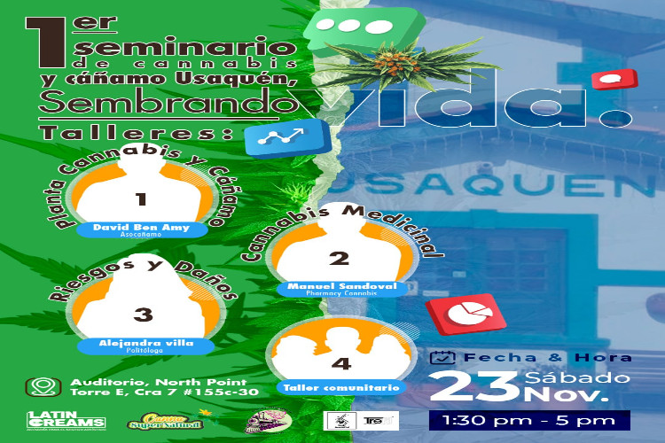 Bogotá D.C., 20 de noviembre de 2024.- El próximo sábado 23 de noviembre, a partir de la 1:00 p.m., el North Point de Usaquén acogerá el Primer Seminario de Cannabis y Cáñamo, un espacio pedagógico y participativo que busca abordar las aplicaciones medicinales del cannabis, el cáñamo, y la reducción de riesgos asociados al uso de sustancias psicoactivas (SPA).